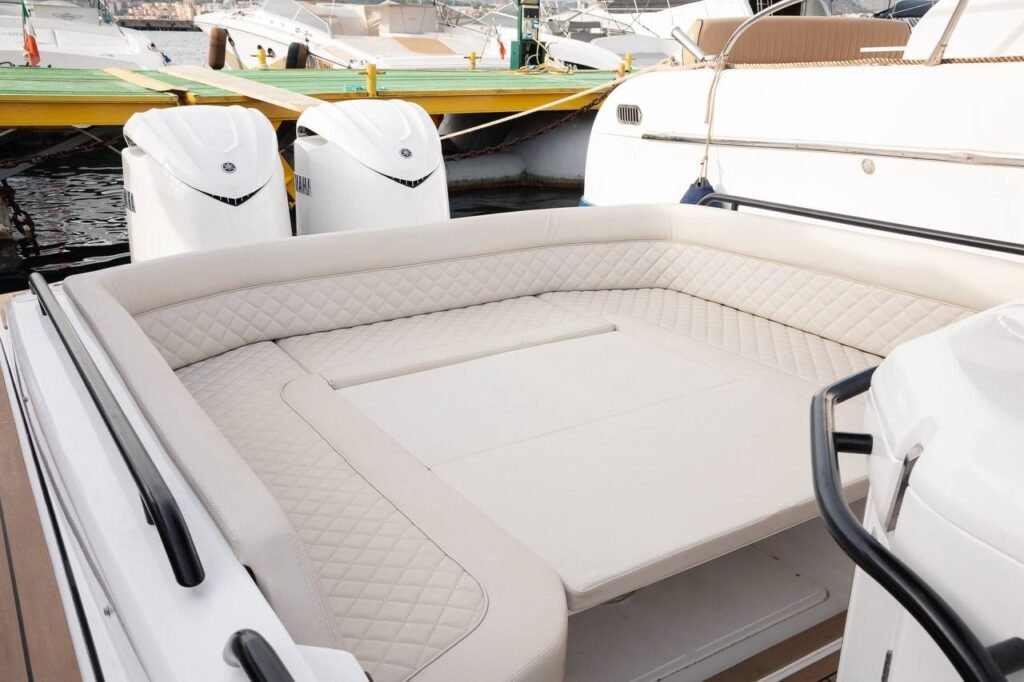 Il nostro gommone offre comfort di bordo con bagno, doccia calda e due motori da 350hp per farti vivere una giornata tra lusso e adrenalina.
